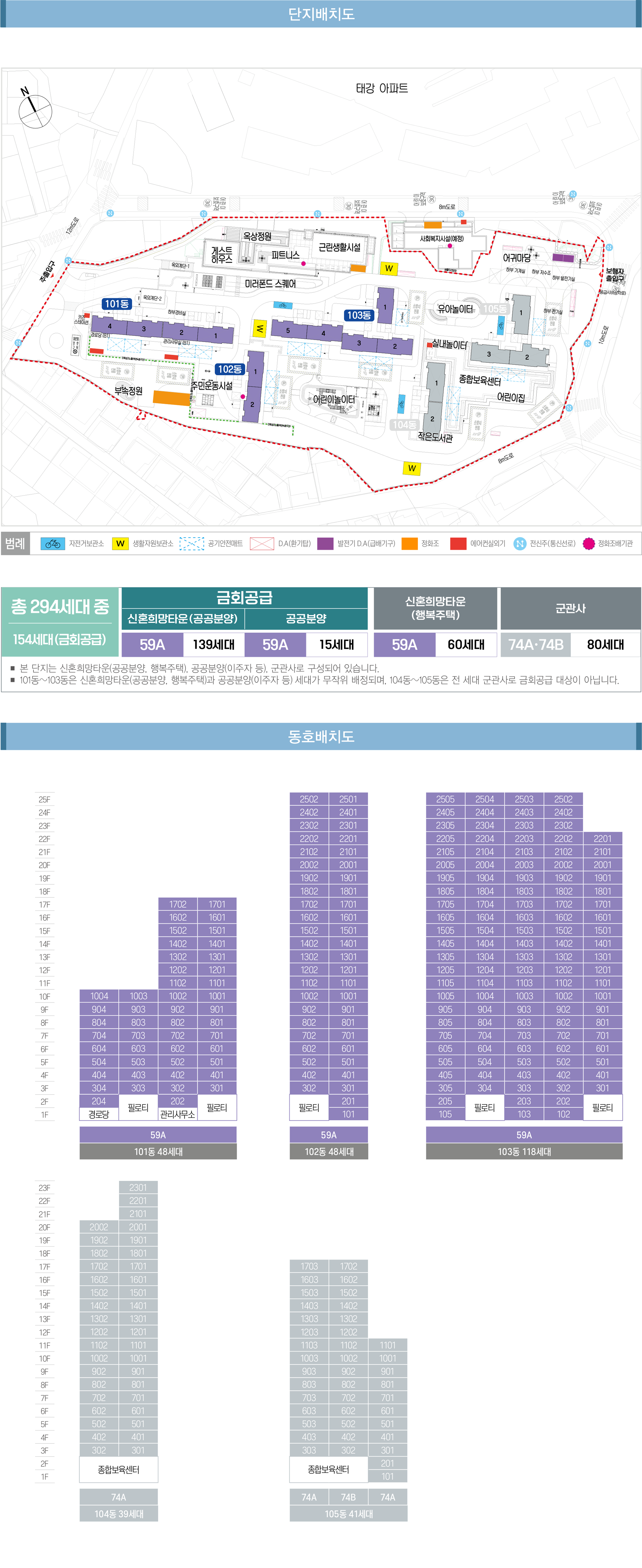 - ※ 본 동호배치도의 각 시설 설치계획 등은 사업추진과정에서 변경 · 취소될 수 있습니다.